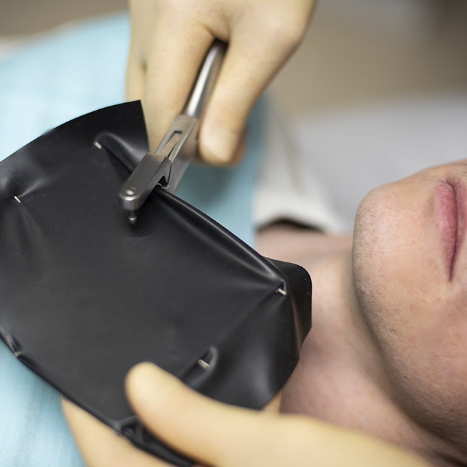 Проводится операция по удалению кисты. Хирург формирует специальный микро-доступ к корню зуба через кость. Проводит раскрытие, удаление оболочек кисты, а также периапикальную коррекцию верхушки корня для устранения инфицированного участка. Затем — чистку и наполнение образовавшегося дефекта кости костнопластическим материалом. ПОДРОБНЕЕ